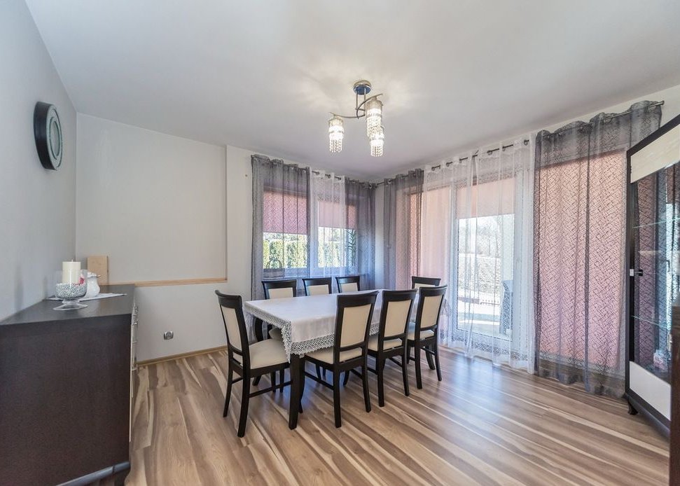 Na szczególną uwagę zasługują przepiękny kominek w salonie, klasyczna klatka schodowa z dębowymi schodami oraz garaż w bryle budynku, co zapewnia komfort w zimowe i deszczowe dni. Dodatkowym atutem jest niezależne ujęcie wody ze studni oraz dostęp do światłowodu.