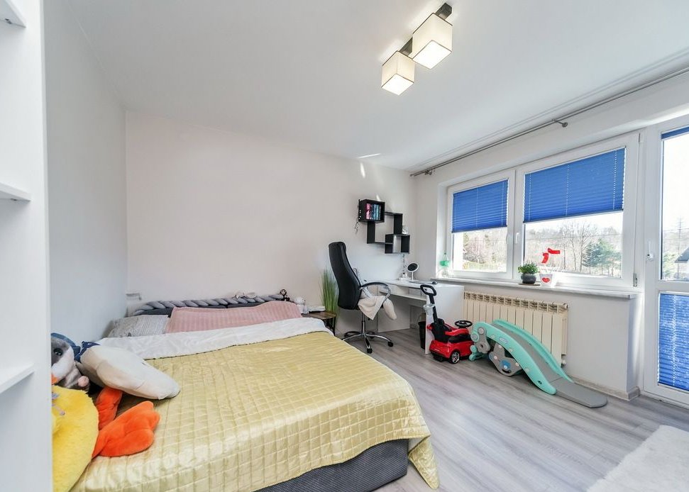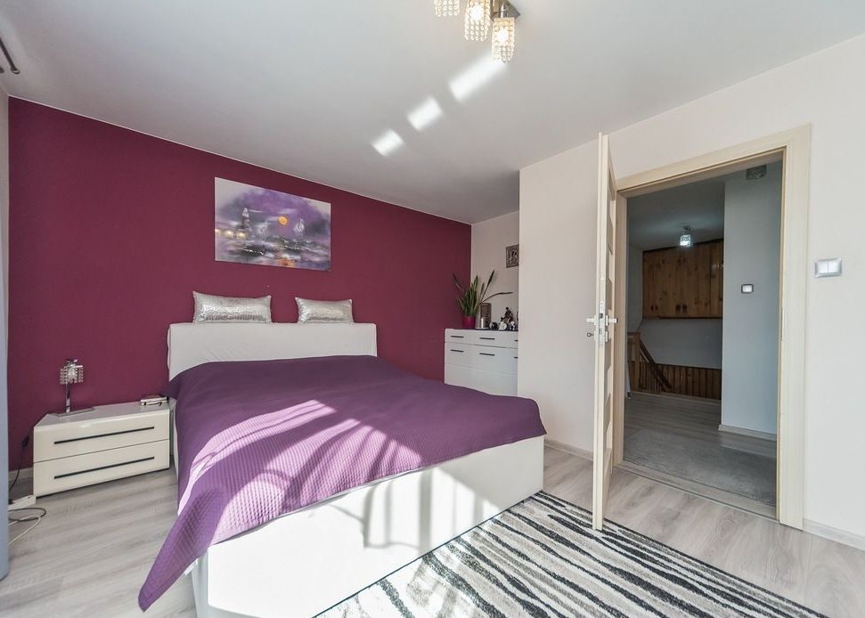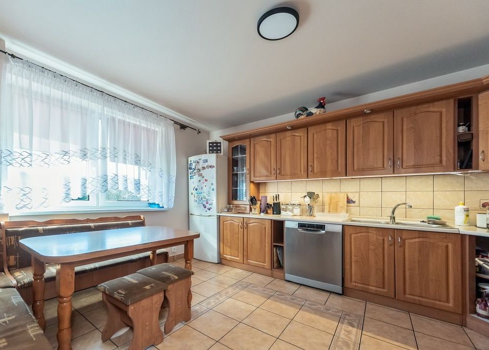 Dom oferuje cztery niezależne pokoje oraz dodatkowe pomieszczenia użytkowe, co czyni go idealnym rozwiązaniem zarówno dla rodzin, jak i osób ceniących przestrzeń oraz ciszę i spokój.