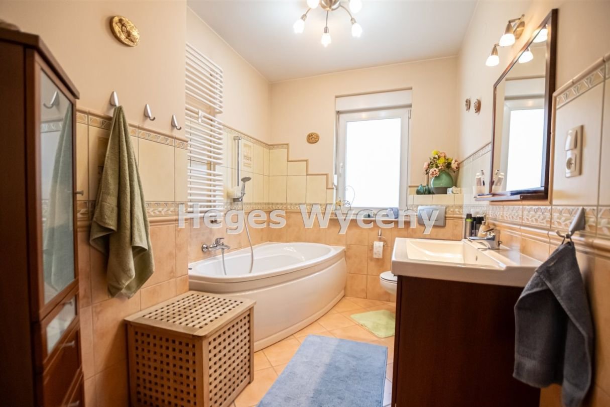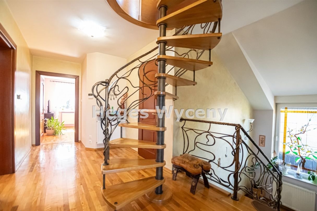 Dom wykończony został w stylowy i klimatyczny sposób, z dużą dbałością o detale. Wnętrza utrzymane są w bardzo dobrym stanie, nie wymagają remontów ani napraw. Centralnym punktem salonu jest piękny kominek opalany drewnem, nadający wnętrzu wyjątkowej atmosfery. W łazienkach znajduje się glazura w klasycznym stylu, a drzwi wykonane są z drewna. Całość dopełniają liczne elementy zdobnicze wykonane z mosiądzu, takie jak karnisze, lampy, barierki przy schodach czy inne detale widoczne we wnętrzu. Wyjątkowym akcentem jest duży witraż okienny na klatce schodowej, pięknie komponujący się ze zdobieniami.