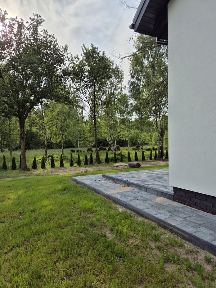 Dom oddawany w stanie deweloperskim. Rozprowadzona instalacja elektryczna, tynki gipsowe, ogrzewanie podłogowe, wylewki, kostka brukowa na podjeździe, tarasie i wokół budynku, ocieplenie i elewacja.