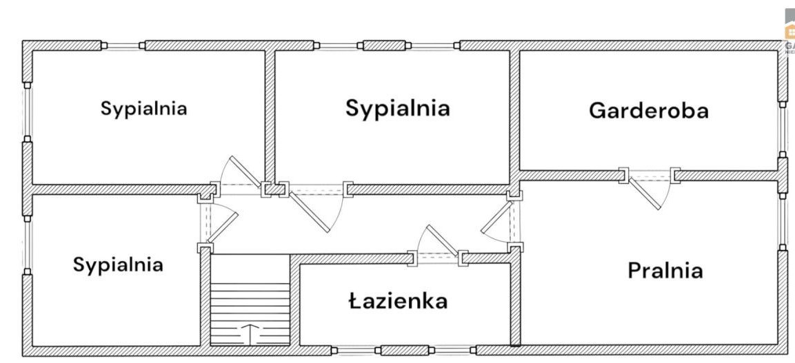 - 3 sypialnie, łazienka, korytarz, pralnia, garderoba