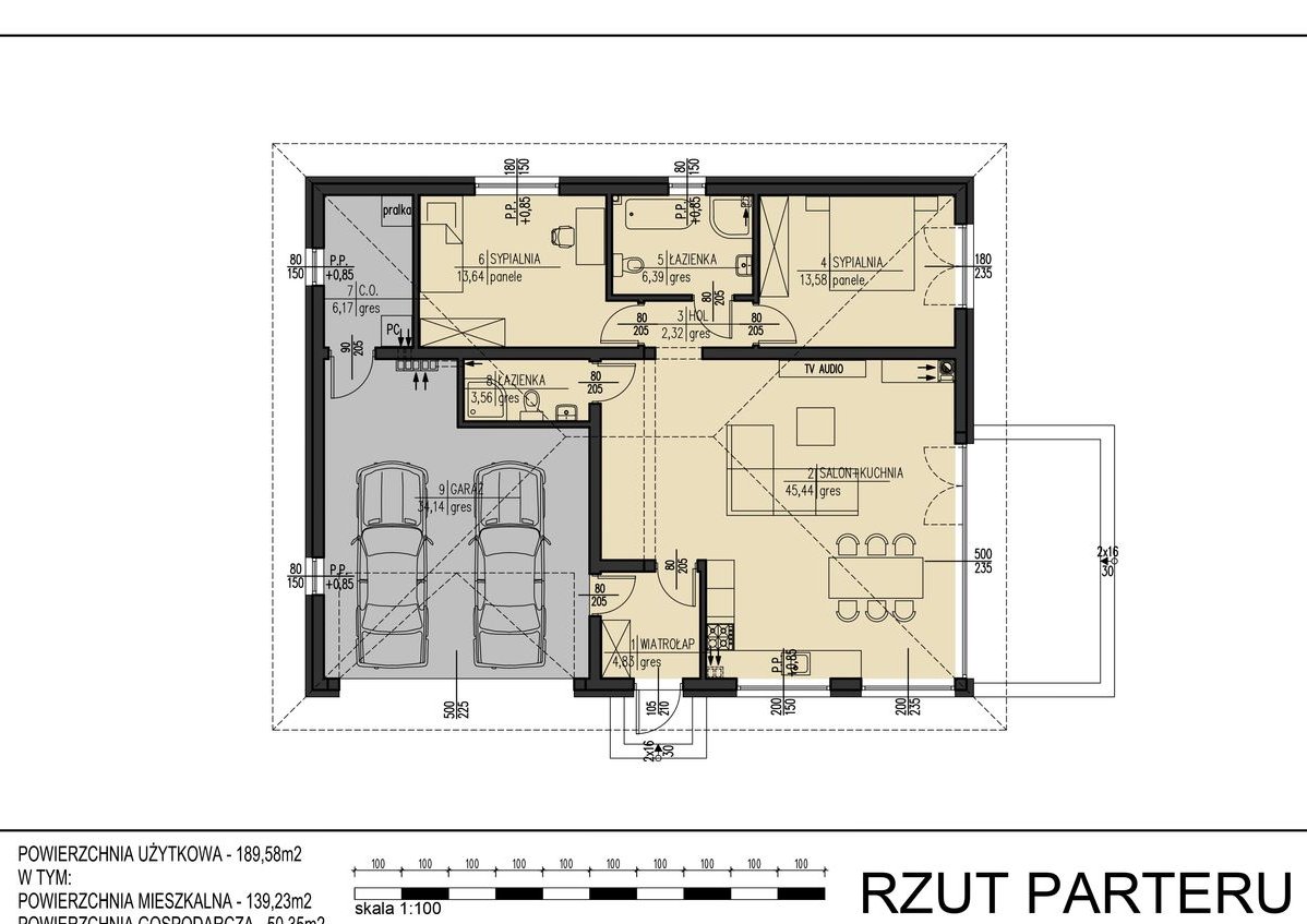 · Garaż dwustanowiskowy o pow.34.14 m2 oraz kotłownia o pow.6.17m2