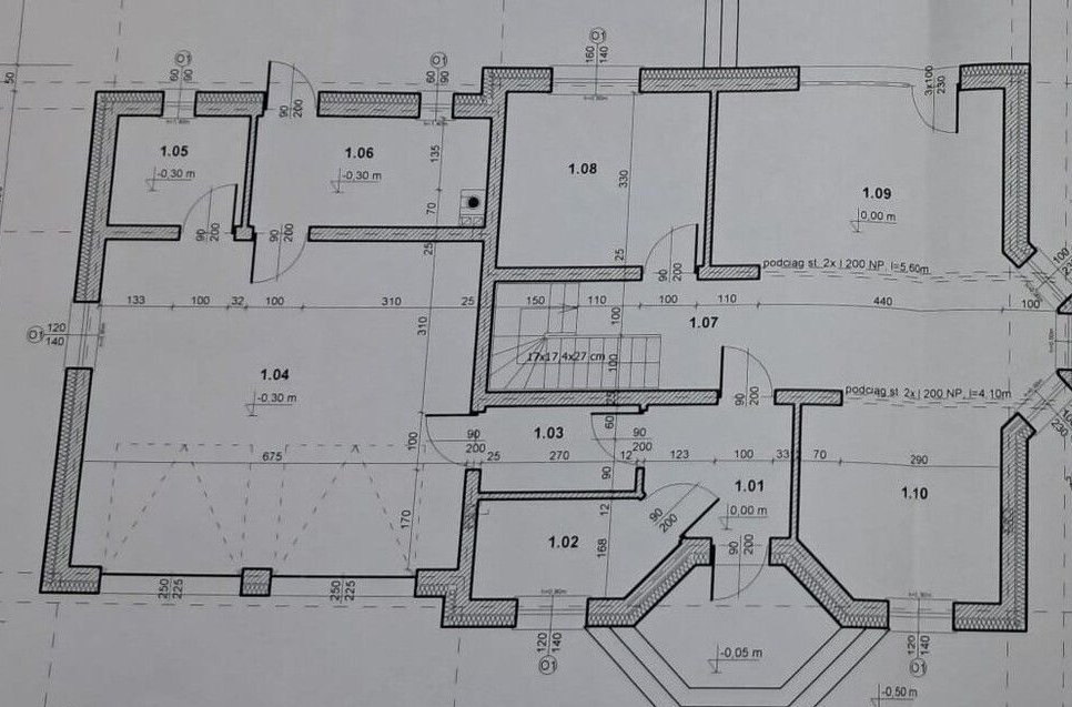 Nieruchomość ma stan surowy zamknięty. Budynek nie jest podpiwniczony. Ściany murowane, dwuwarstwowe o grubości 45 cm (warstwa wewnętrzna z pustaków ceramicznych typu Porotherm). Przewidziane ogrzewanie w formie centralnego ogrzewania kocioł grzewczy na paliwo stałe (eko-groszek/pellet) z podajnikiem.
