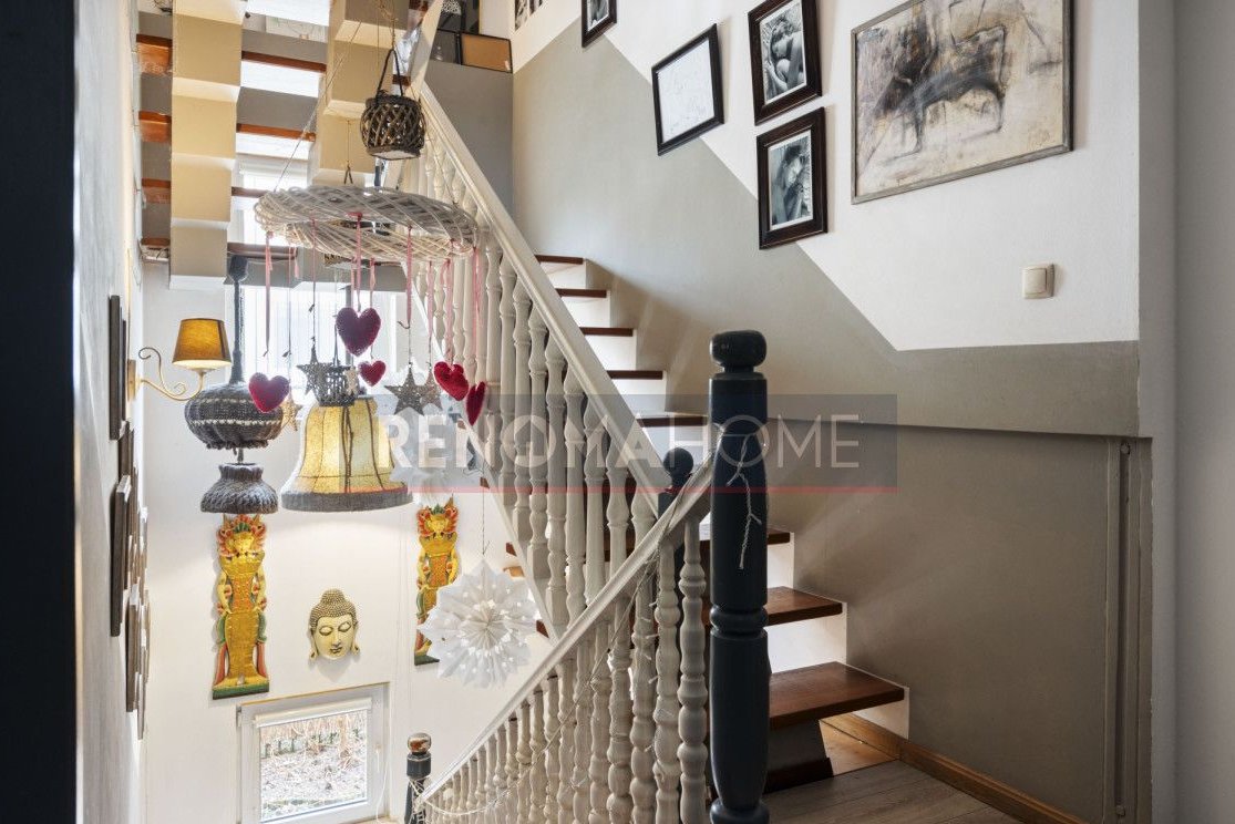 Dom posiada unikatowe ogrodzenie i posadowiony jest na dużej zagospodarowanej działce o powierzchni ok. 740 m2.