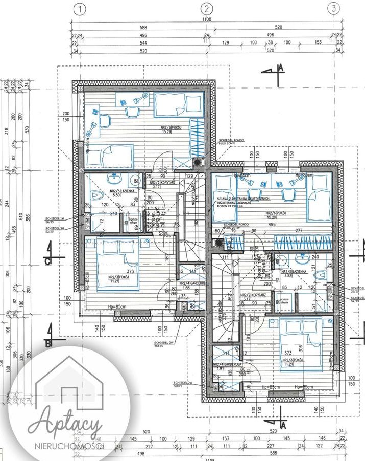 Powierzchnia projektowana całkowita dla lokalu wynosi 82,19 m2 / użytkowa projektowa 80,19 m2 plus strych, wysokość pomieszczeń na parterze 2,70 m, natomiast na piętrze 2,73 m.