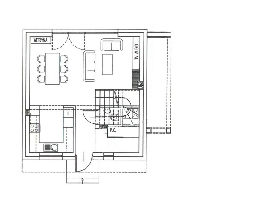 Dom wyróżnia się praktycznym układem pomieszczeń z oddzieleniem strefy dziennej i nocnej, a jego lokalizacja łączy zalety życia na wsi z łatwym dostępem do codziennych udogodnień.