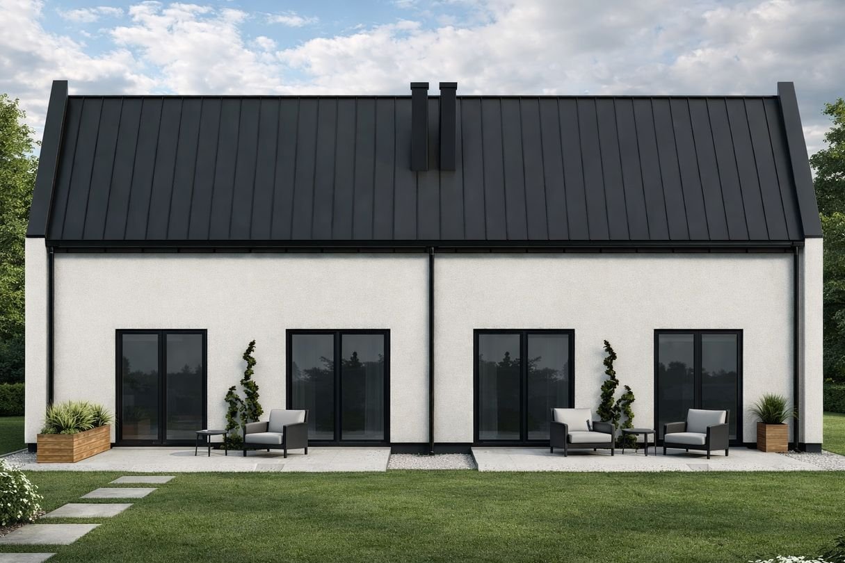 Dach ocieplony i pokryty blachą na rąbek.