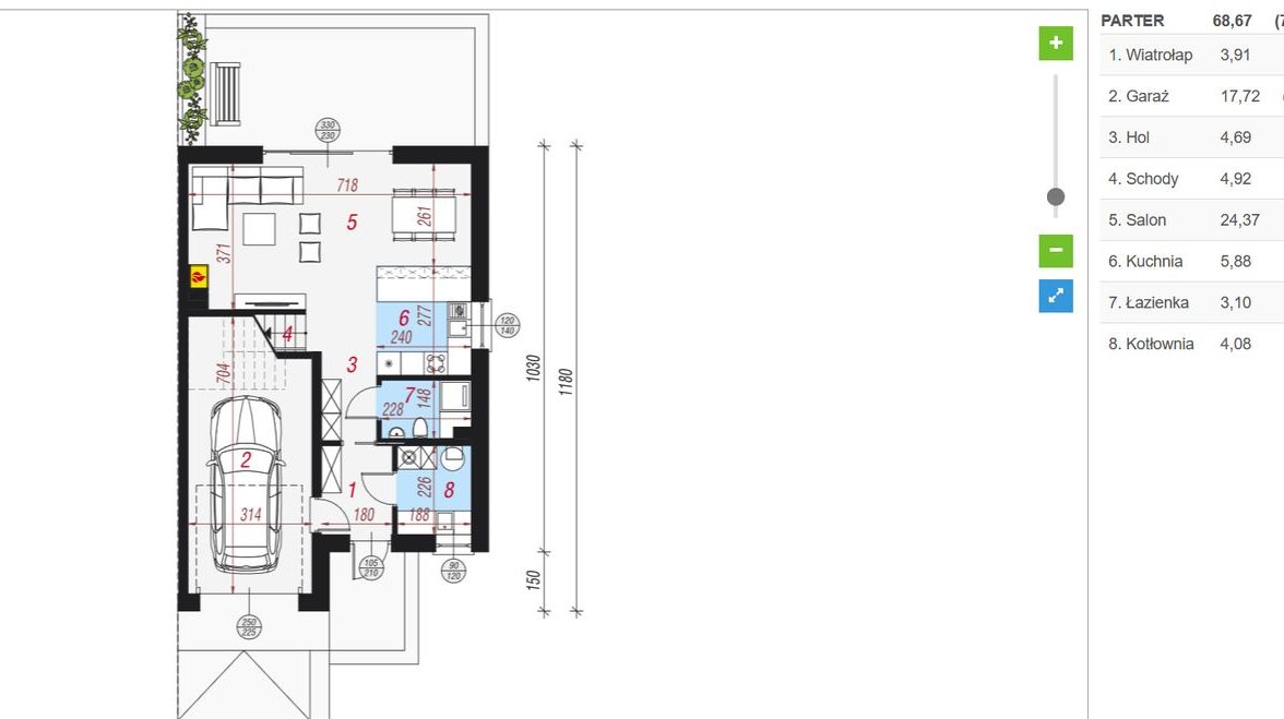 Powierzchnia całkowita połowy bliźniaka: 171,67 m2