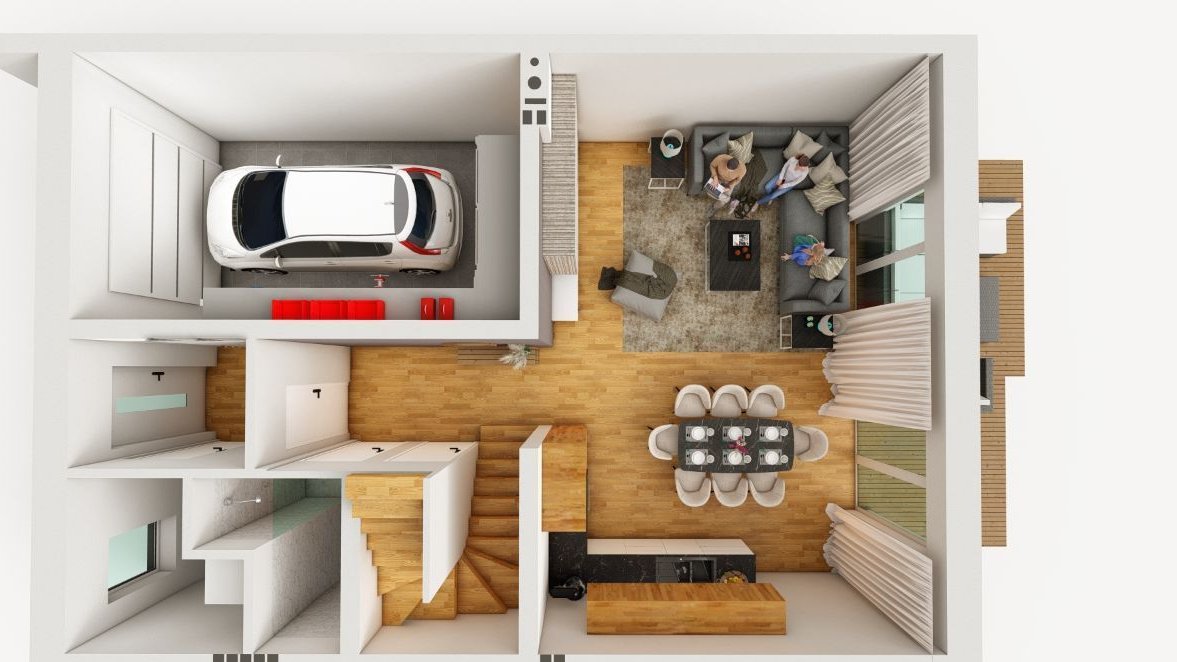Garaż – wbudowany garaż o powierzchni 19 m² zapewnia komfort przechowywania pojazdu oraz dodatkowe miejsce do przechowywania rzeczy.