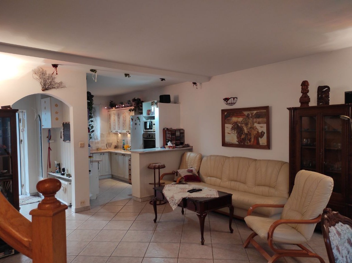 salon z widną kuchnią, wyjściem na taras, spiżarnią i małą łazienką (prysznic)
