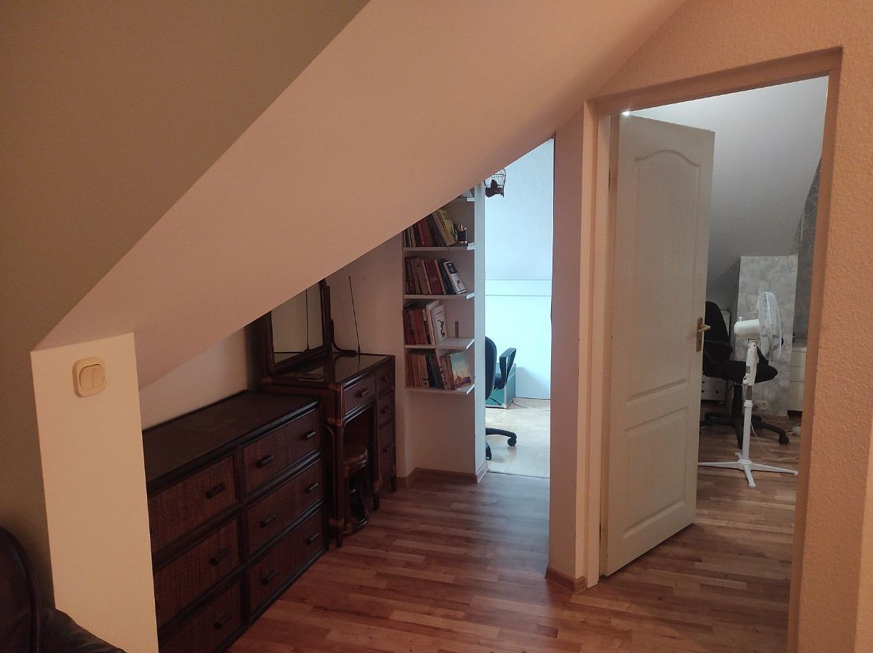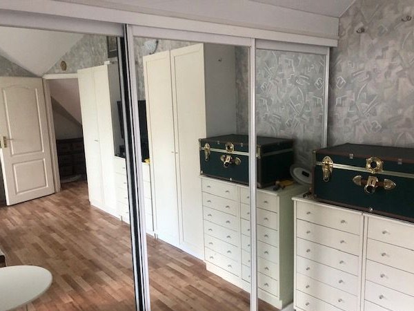 duża sypialnia z garderobą, gabinet z dużą szafą, pokoik np. dla gościa, duża łazienka (wanna).