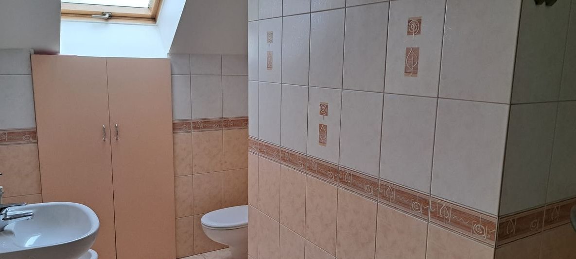 Mieszkanie piętro/2 piętro: 1 - wiatrołap, kuchnia z jadalnią, salon, balkon z wyjściem na ogród, toaleta, 2 - trzy sypialnie, garderoba, toaleta, - istnieje możliwość zaadoptowania strychu na kolejny poziom.