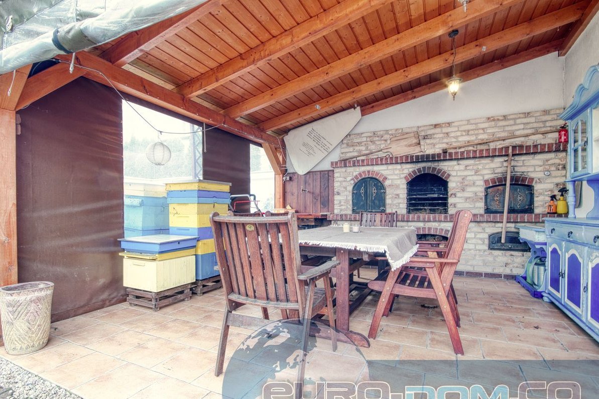 Strefa relaksu – zadaszona część wypoczynkowa wyposażona w solidny piec do pizzy, stanowisko grillowe i wędzarnię z osobnym paleniskiem do wędzenia na zimno. Na zimę – rolowane foliołe ściany do osłony przed niepogodą.