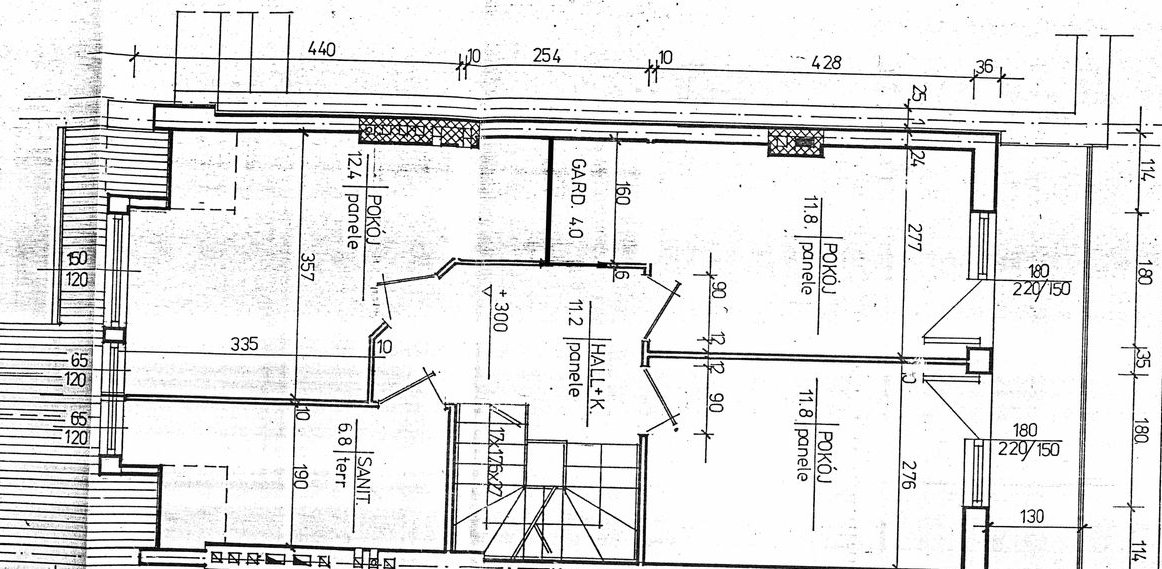 Powierzchnia całkowita ok. 250m2 (+ taras, balkony, przedsionek, drewutnia), działka 233m2.