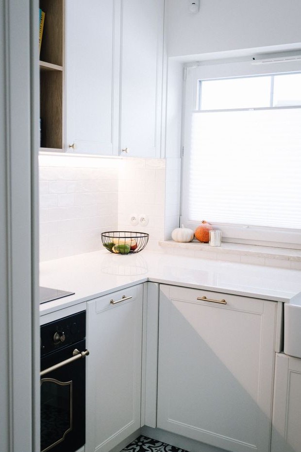 Otwarta kuchnia ze zmywarką, piekarnikiem i płytą indukcyjną