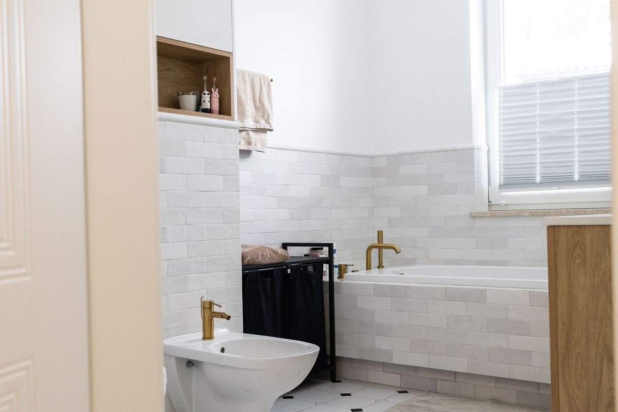 Duża łazienka z wanną, bidetem, umywalką, miską wc, ogrzewaniem podłogowym