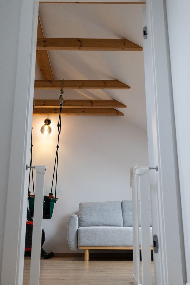 Zamontowane 3 dodatkowe okna dachowe względem stanu deweloperskiego zapewniające mocne doświetlenie poddasza
