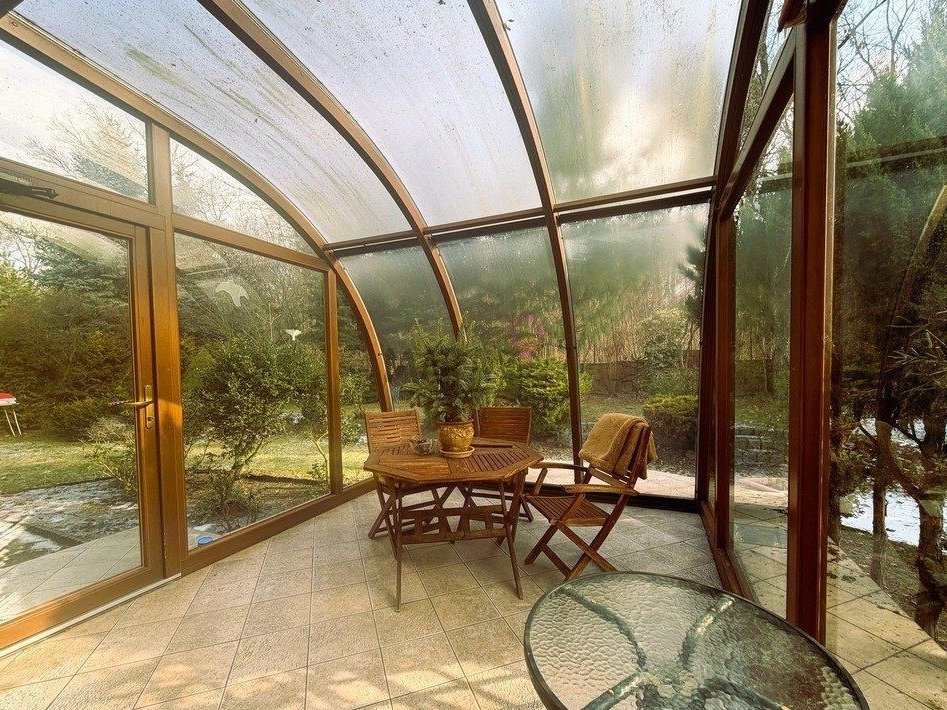 - salon z kominkiem i wyjściem na taras - ogród zimowy (atutów tego typu rozwiązania nie trzeba wymieniać), a z niego zejście do ogrodu,