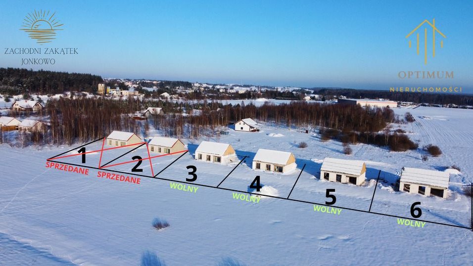 Optimum nieruchomości prezentuje na sprzedaż nowoczesny, wolnostojący dom parterowy w stanie deweloperskim, położony w miejscowości Jonkowo przy ul. Kolejowej, w kameralnej zabudowie jednorodzinnej. Nieruchomość znajduje się na prestiżowym osiedlu Zachodni Zakątek Jonkowo – inwestycji stworzonej z myślą o osobach ceniących spokój, przestrzeń i szybki dojazd do miasta.