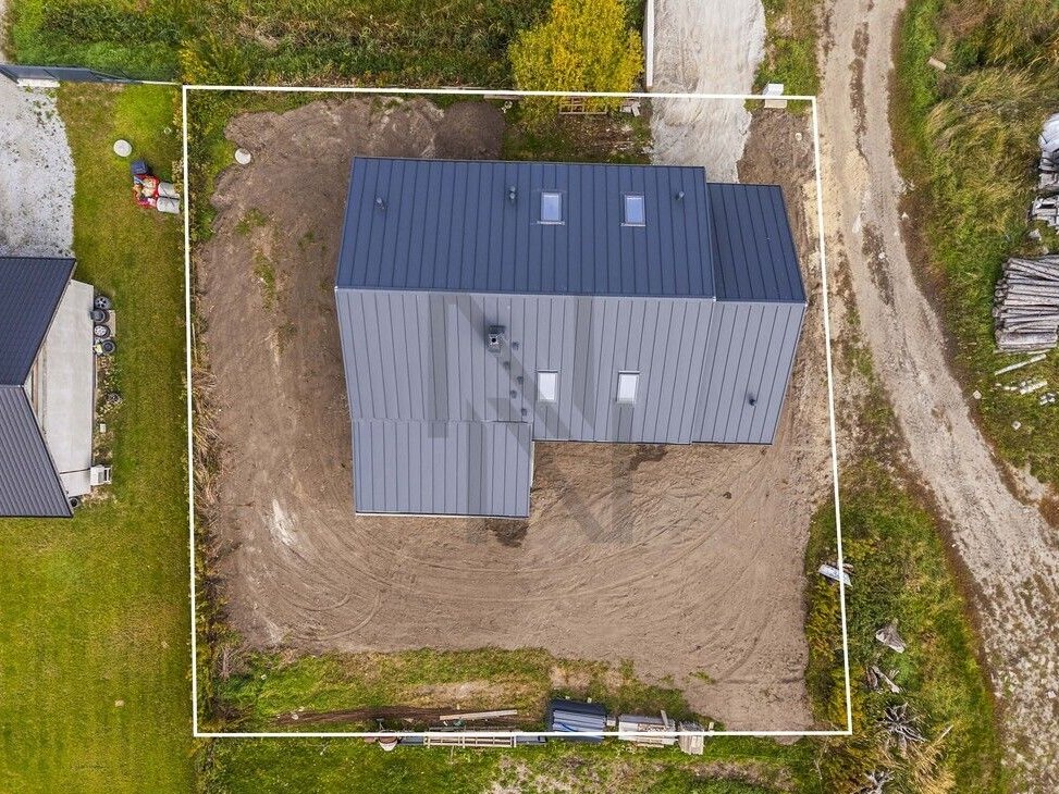 Dom ogrzewany pompę ciepła - ogrzewanie podłogowe. Dom wybudowany z pustaków keramzytowych. Strop z Terivy. Budynek ocieplony jest styropianem 20cm. Poddasze ocieplone wełną skalną prasowaną o grubości 20cm. Dodatkowo 10 cm wełna położona jest w poprzek dachu. Okna 3 szybowe w kolorze antracytu wyposażone w rolety elektryczne w tym samym kolorze. Drzwi wejściowe stalowe w środku i doświetleniem. Na działce znajdują się 2 szamba. Jedno na ścieki o powierzchni 10m3, a drugie na deszczówkę 8m3.