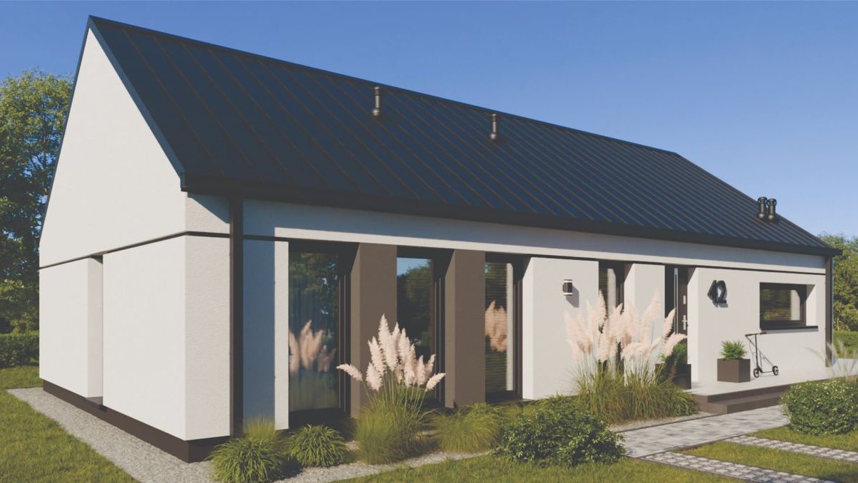 Ten dom w stylu nowoczesnej stodoły łączy minimalistyczną, przyciągającą wzrok bryłę z funkcjonalnym układem wnętrza. Przestronny, jasny salon z aneksem kuchennym jest sercem tego domu — i idealnym miejscem do wspólnych spotkań przy naturalnym świetle. Trzy komfortowe sypialnie gwarantują prywatność i wygodę. Dom posiada też praktyczne pomieszczenia gospodarcze które pomieści wszystkie domowe urządzenia elektro. Zaprojektowany z dbałością o każdy detal tworzy przestrzeń, w której życie rodzinne płynie lekko i swobodnie. Prezentowana oferta dotyczy domu jednorodzinnego budowanego na Waszej działce. Do ceny podstawowej należy doliczyć cenę działki.