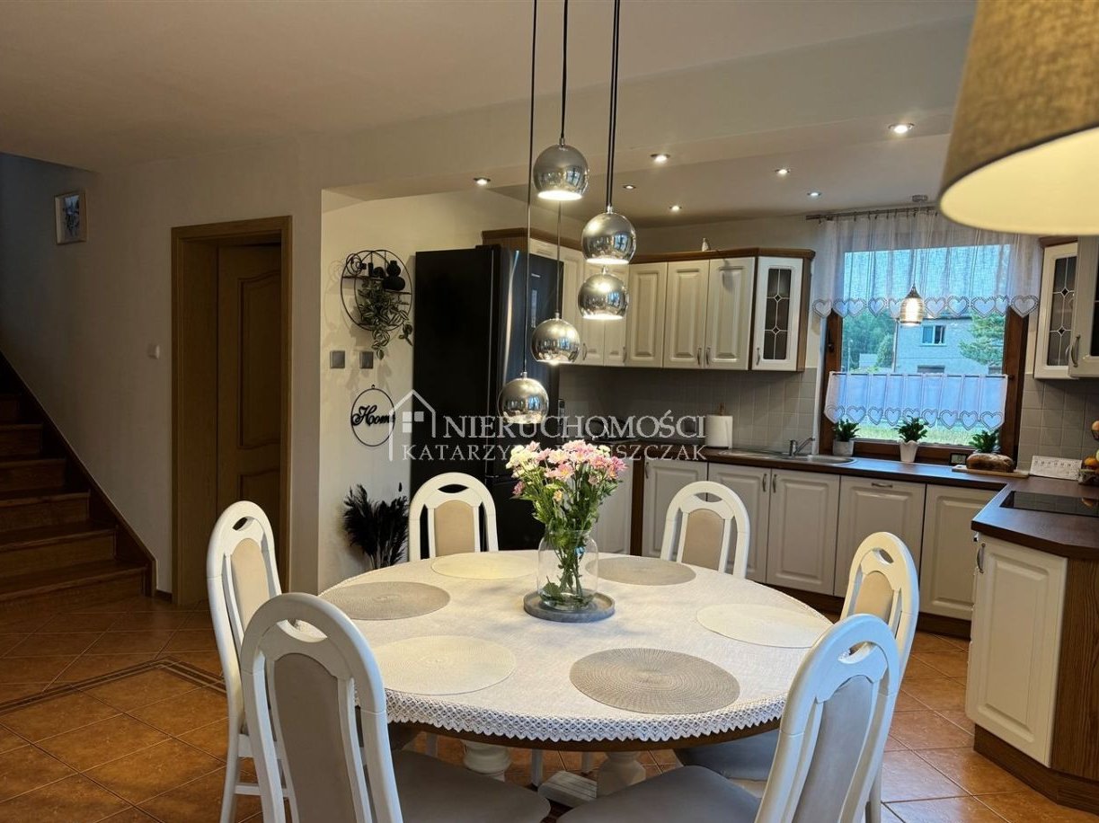 Budynek wolnostojący, parterowy z użytkowym poddaszem, posiada bardzo funkcjonalny układ, a jego powierzchnia całkowita to ok.150m2 , (w tym garaż 24m).