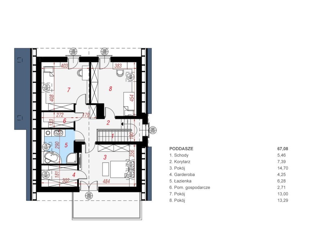 Piętro to 67,08 m² przestrzeni: