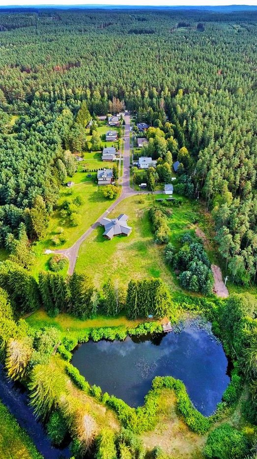 Dom zlokalizowany w malowniczej wsi, otoczonej pięknymi, bezgranicznymi lasami i trzema jeziorami w pobliżu: Omulew, Trzcinowe i Kopeć . W granicy działki płynie spławna rzeka Omulew, która dzięki odpływowi zasila nasz wspólny staw regulowany dwom jaziami.