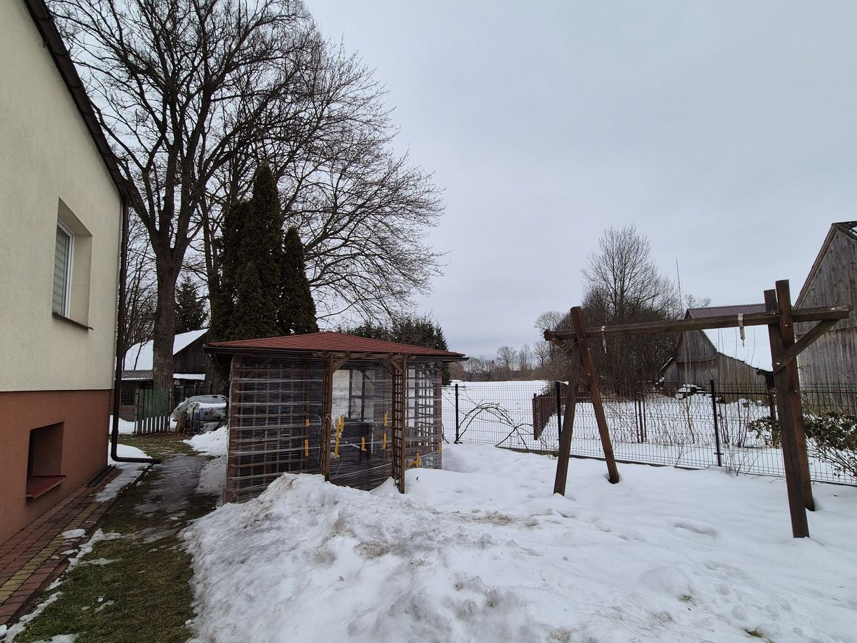 Posiada użytkową piwnicę, w której znajduje się druga kuchnia, pokój (ok.14 m2), pomieszczenie/spiżarnia. Dom jest ogrzewany piecem na pellet, choć w kuchni, w części mieszkalnej, znajduje się także stary, czynny, urokliwy piec kaflowy (kuchnia kaflowa).