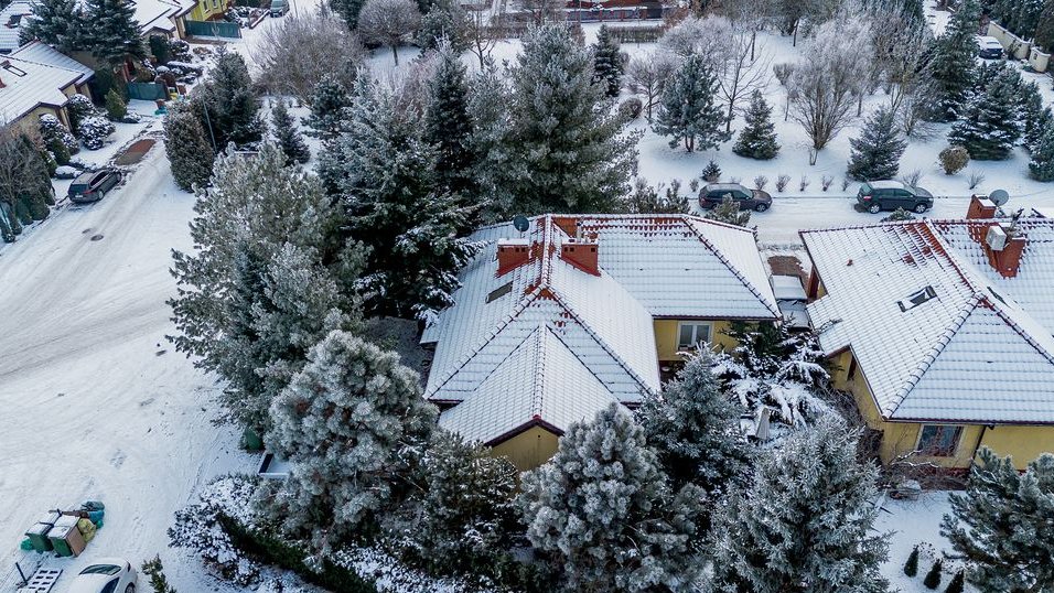 Dom posadowiony jest na 536 -metrowej działce, otoczony starannie pielęgnowanymi świerkami.