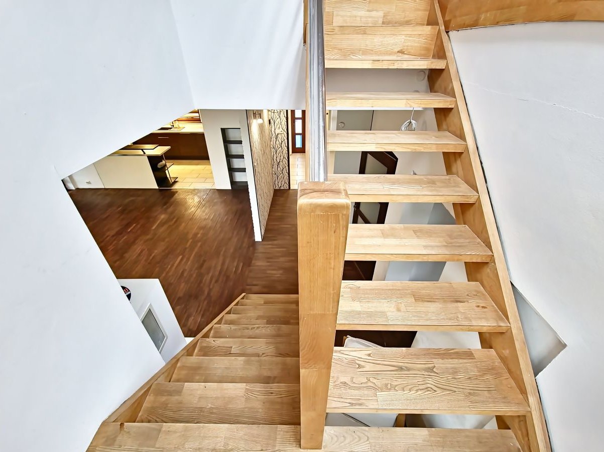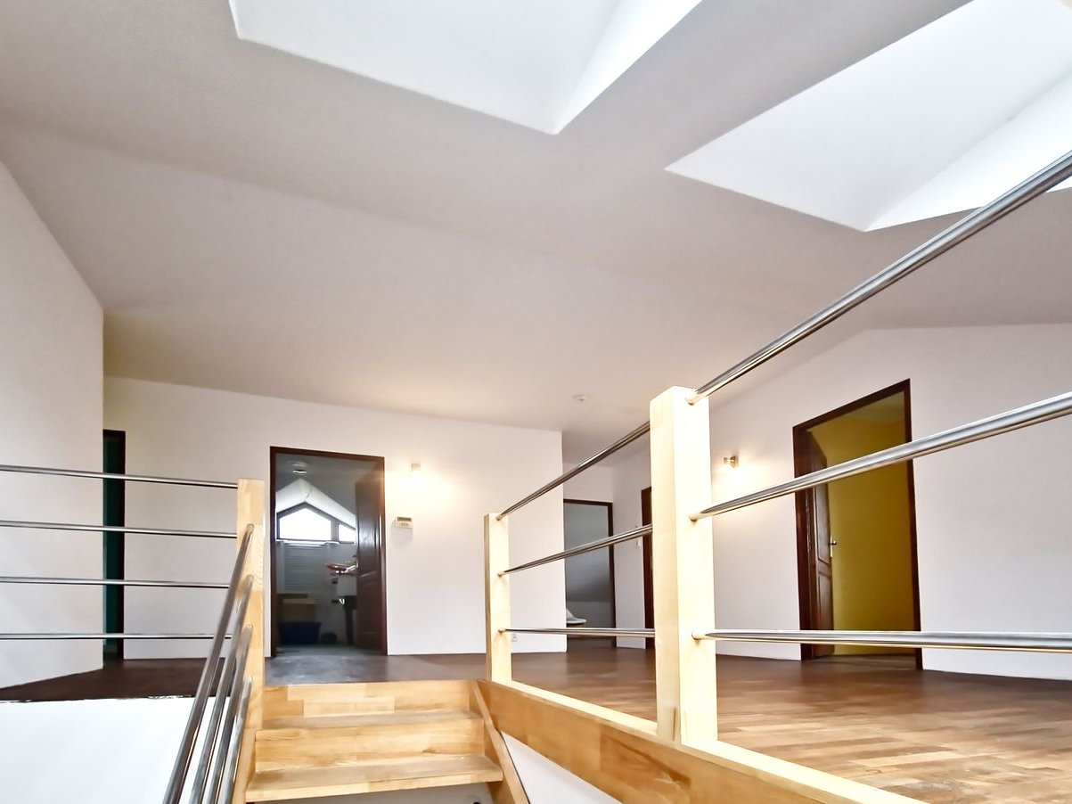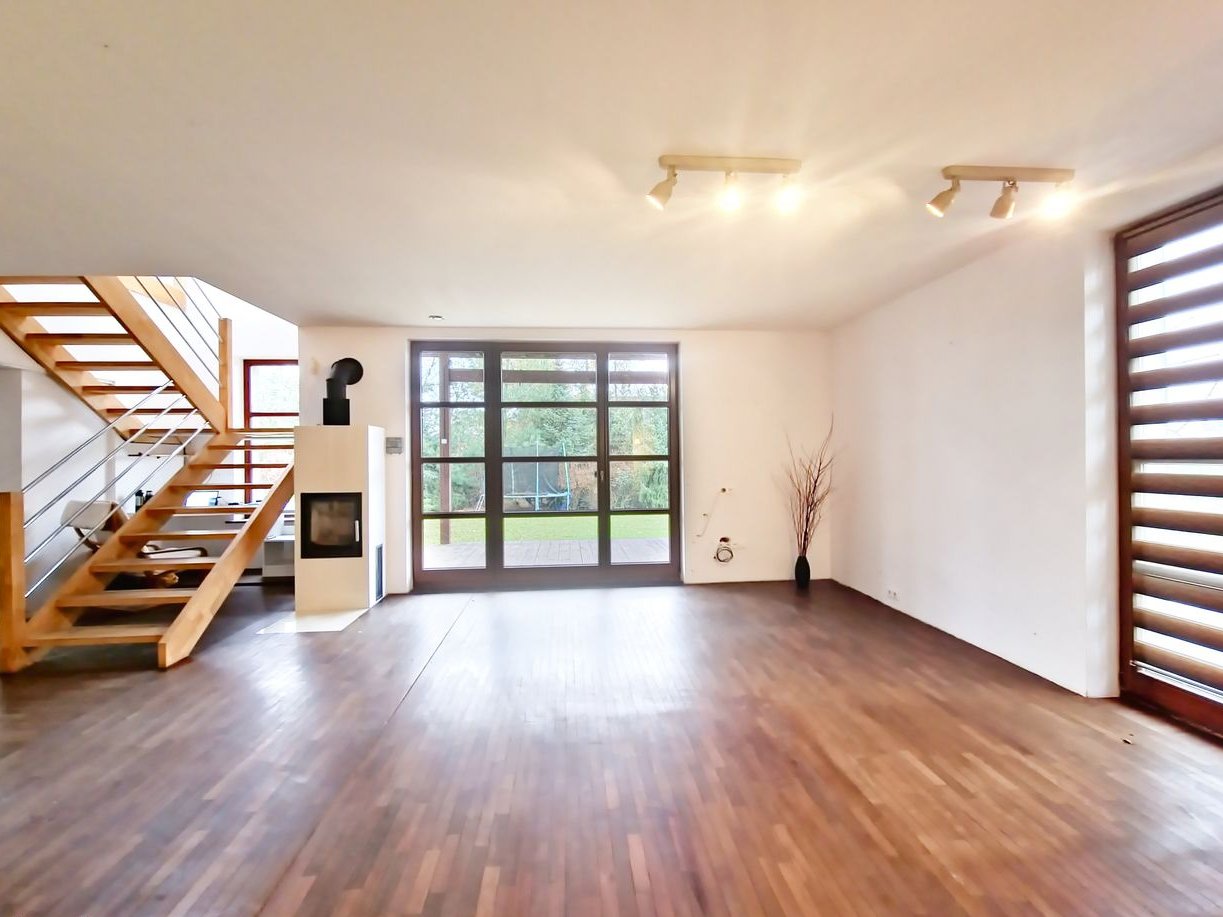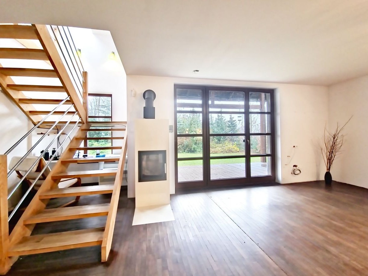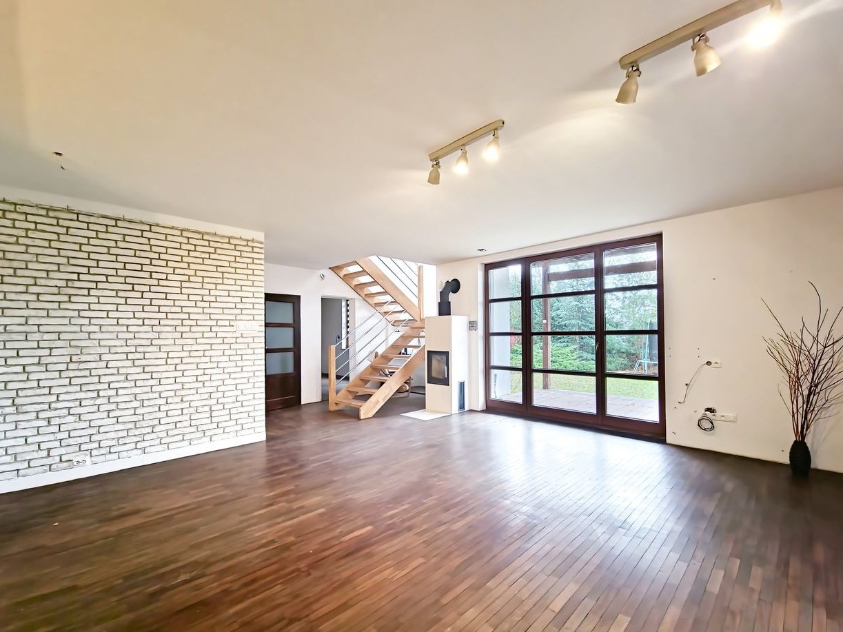 Podłogi: na parterze parkiet z drewna egzotycznego Massaranduba, na piętrze drewno Jajatoba