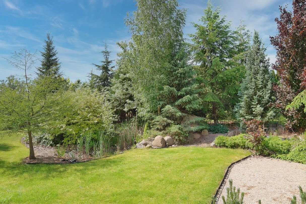 Pięknie zagospodarowany, słoneczny ogród z systemem nawadniającym - od tyłu graniczący z naturalną łąką.