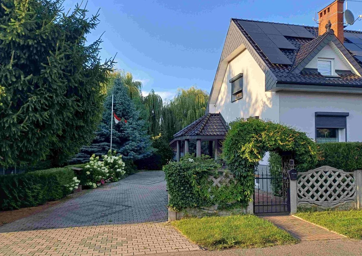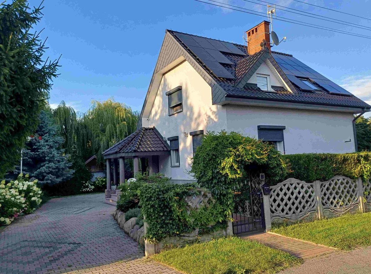 Dom został wybudowany w 2002 roku. Wyposażony został w pompę ciepła firmy Panasonic, odsalacz wody, fotowoltaikę 10 KW, ekologiczną oczyszczalnię. Dom zero energetyczny. Teren wokół domu w pełni ogrodzony, oświetlony i objęty monitoringiem z możliwością podglądu na smartfonie. Wjazd i teren wokół domu utwardzony kostką brukową. Dwie automatyczne bramy wjazdowa na posesję, garaż wolnostojący na trzy samochody (oddzielne automatyczne bramy wjazdowe), oraz dodatkowy garaż przy domu.