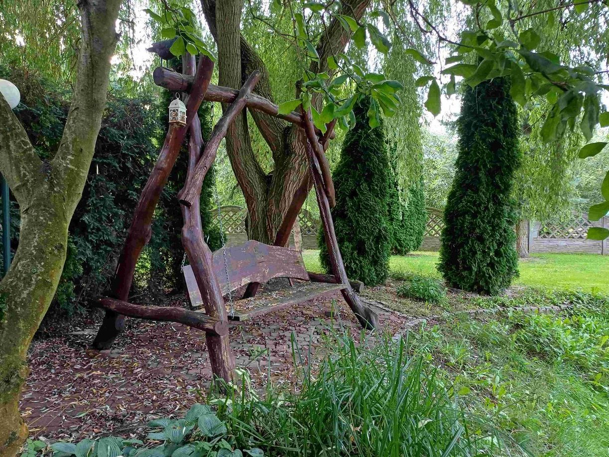 OGRÓD - to miejsce wyjątkowe, idealne do odpoczynku i relaksu, Własny zarybiony staw o powierzchni lustra wody 600 m2. Nad stawem znajduje się pięknie wkomponowana i otoczona zielenią duża altana oraz pomost. W ogrodzie znajdują się liczne nasadzenia drzew i krzewów ozdobnych, mały sad. Na posesji znajduje się duży garaż oraz budynek gospodarczy.
