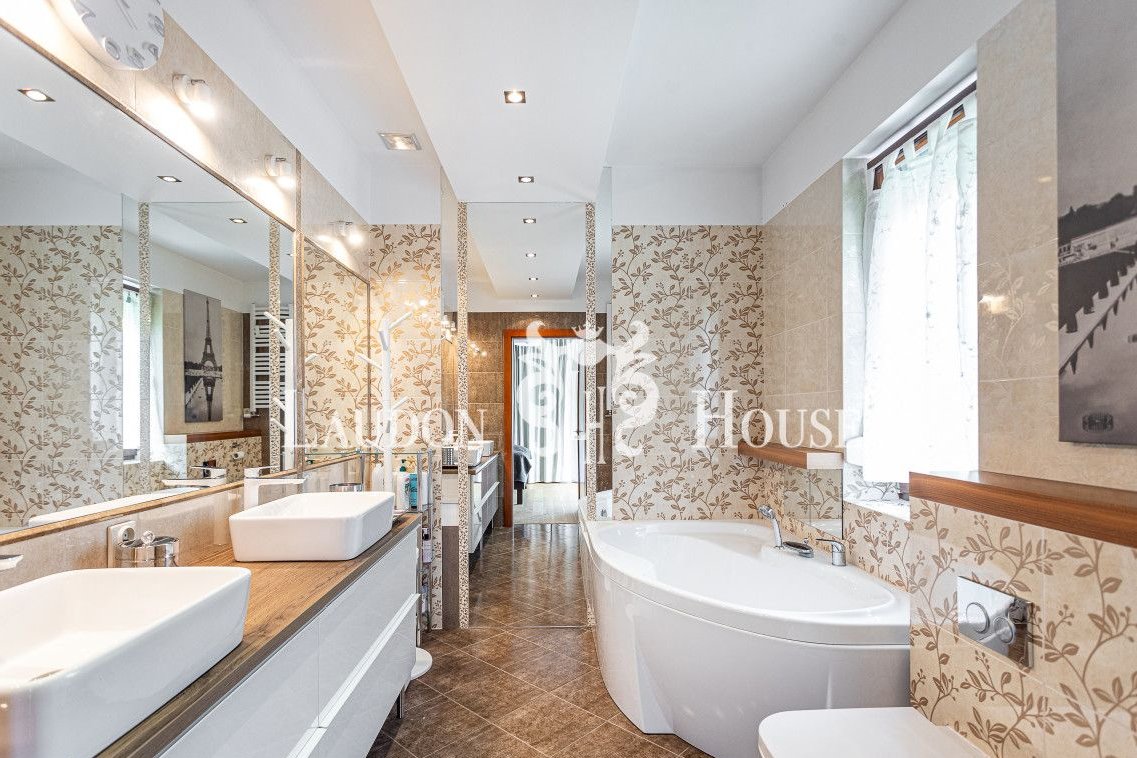 Dom posiada klimatyzację, ogrzewanie gazowe wspomagają pompy cieplne - klimakonwektory rozprowadzone w całym domu. Wykończony naturalnymi materiałami wysokiej jakości w ciepłych, przytulnych kolorach, stolarka okienna drewniana.