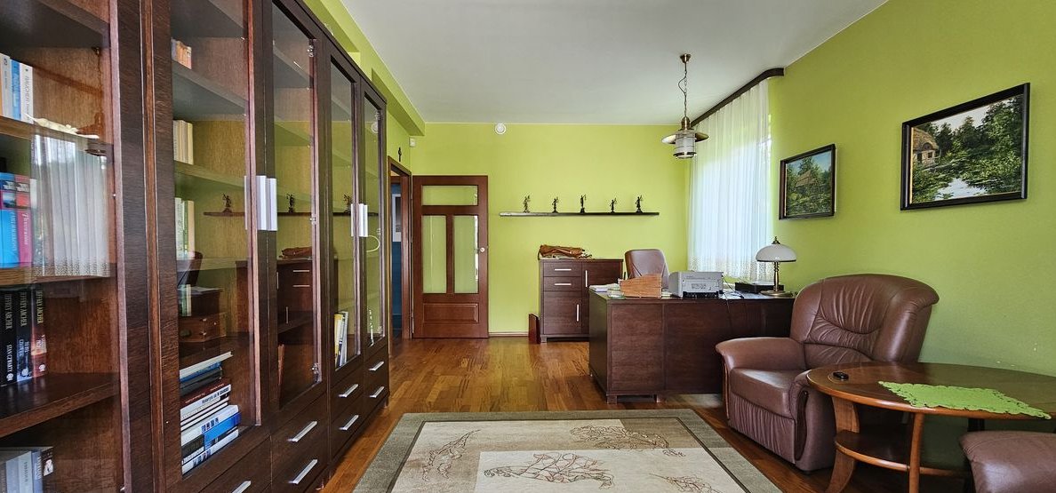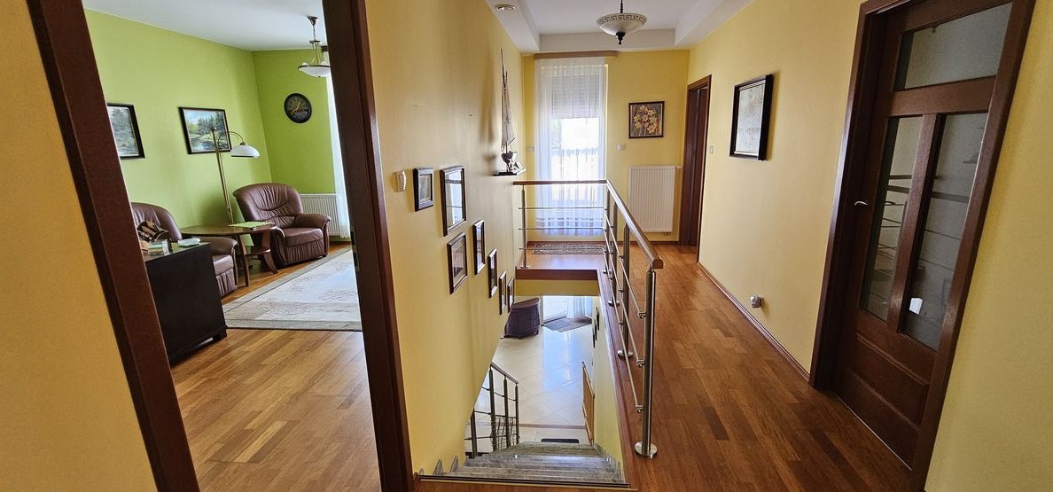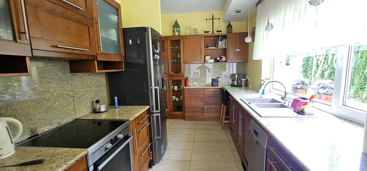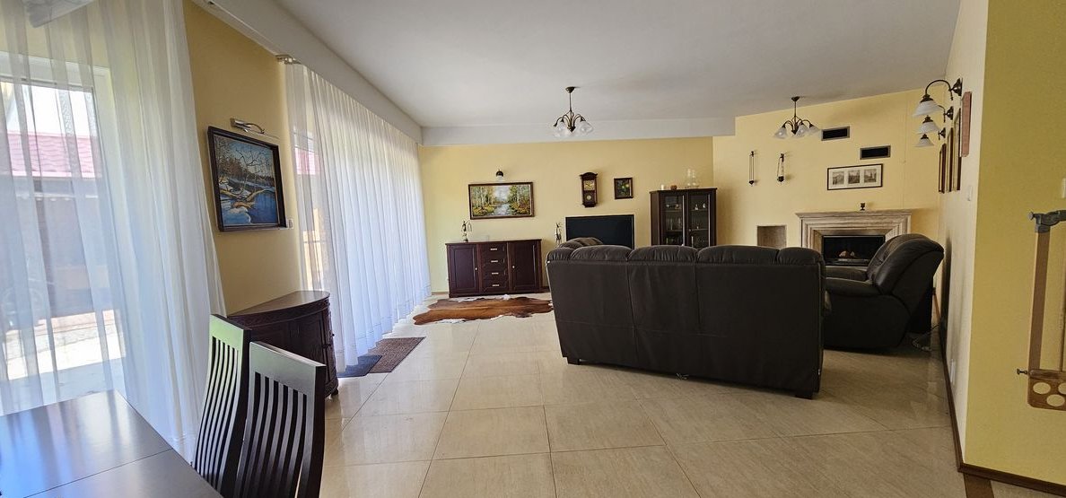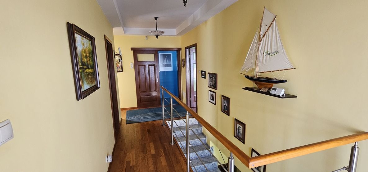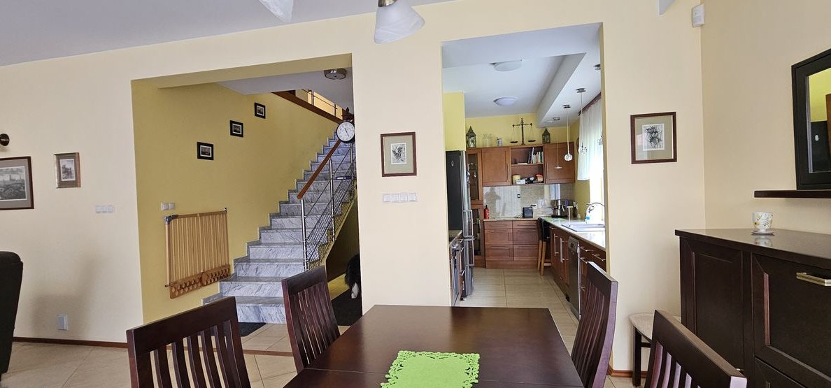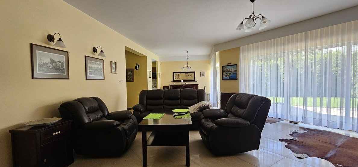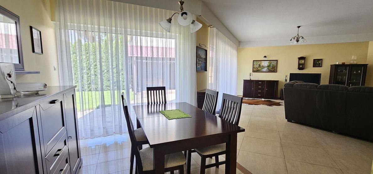 Dom wykończony i wyposażony z materiałów najwyższej jakości. Na podłodze naturalne drewno, drzwi dębowe, w kuchni marmur. Dom ogrzewany piecem gazowym ( piec został wymieniony na nowy w 2023 roku) oraz kominkiem. Do dyspozycji mieszkańców bardzo przestronny garaż dwustanowiskowy z małym warsztacikiem oraz wanną dla kąpieli zwierząt. Wyjątkowy dom w świetnej lokalizacji.