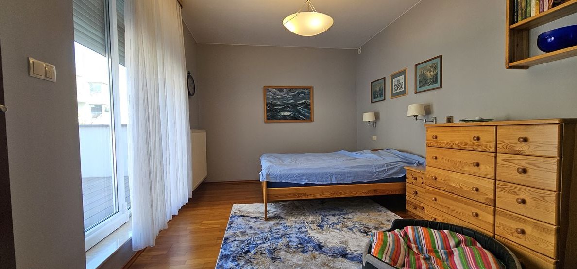 DOM zbudowany w 2011 roku o całkowitej powierzchni użytkowej 210,87m2 , usytuowany na działce 504m2. Dom znajduje się na zamkniętym osiedlu domów jednorodzinnych i wielorodzinnych. Obszar zielony ,cichy, przyjazny dla mieszkańców. Dom posiada pełne zagospodarowanie wokół , w tym domek gospodarczy , wiatę na drewno oraz ogromny taras na 1 piętrze na który można się dostać z 2 odrębnych sypialni i holu. Ponadto dom wyposażony w instalację fotowoltaiczną ( 6,6KW), kominek użytkowy do palenia drewnem oraz saunę fińską w górnej łazience. Dom bardzo słoneczny korzystnie usytuowany względem stron świat.