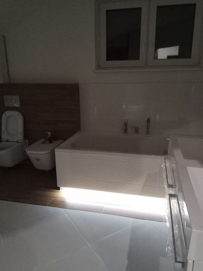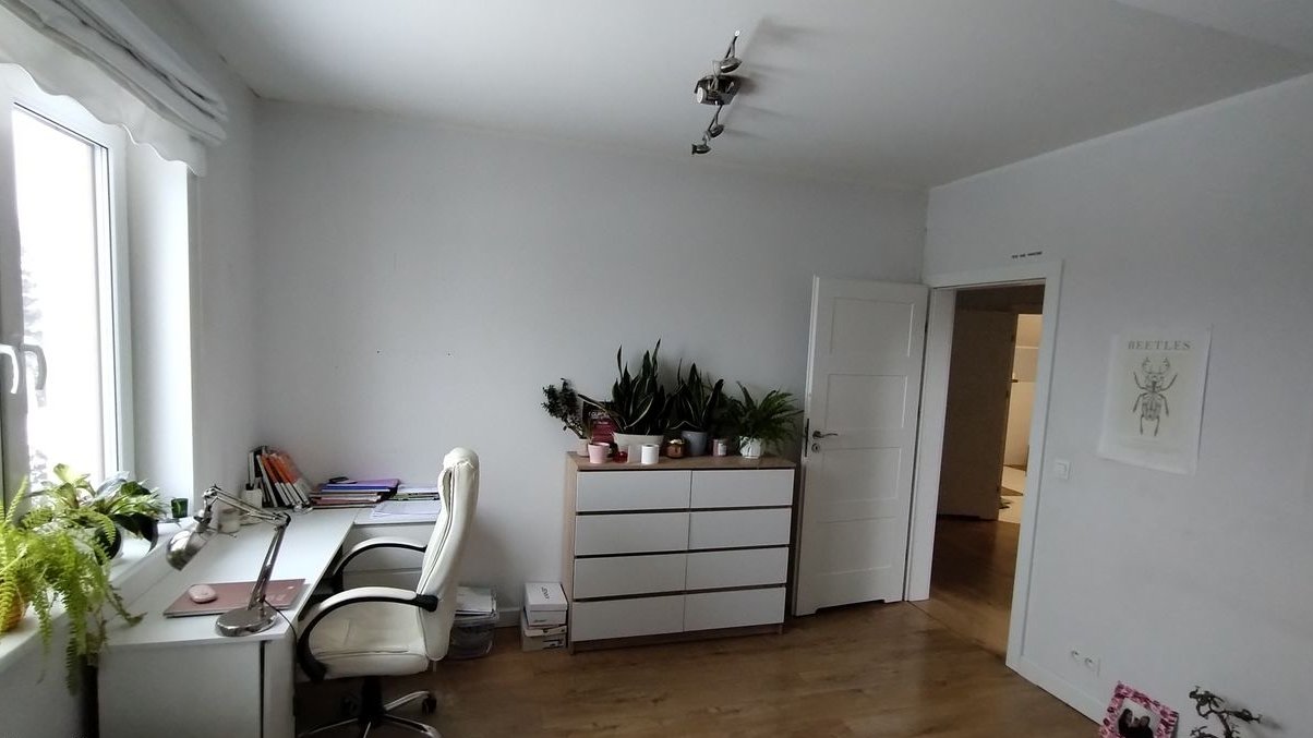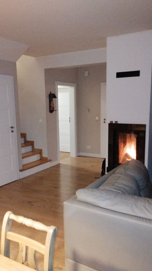 Piętro – trzy sypialnie, mały gabinet, duża łazienka z wanną, prysznicem oraz specjalnie wydzielonym miejscem na pralkę i suszarkę- razem ok. 70m2