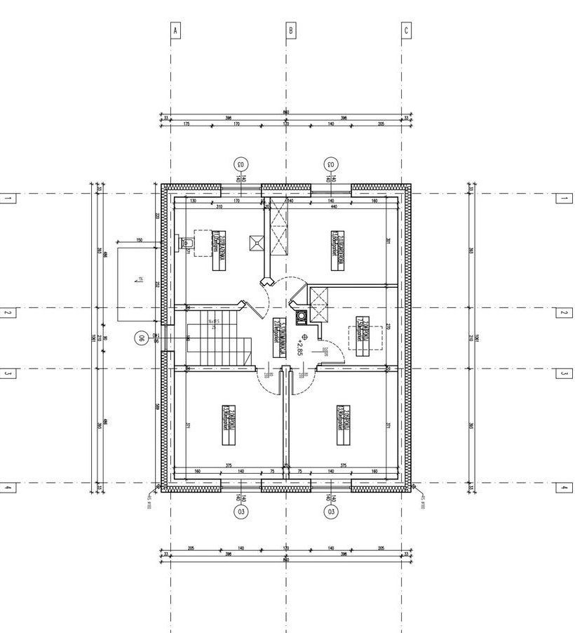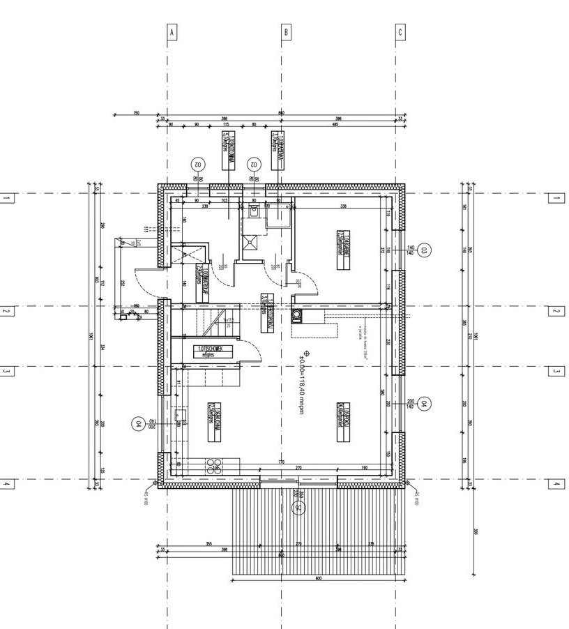Budowa zakończona w 2018 roku według zmodyfikowanego projektu Ekotypowy 3. Usadowiony na płycie fundamentowej wykonanej przez renomowaną niemiecką firmę Brinkmann. Płyta fundamentowa ocieplona od spodu styrodurem BASF, ściany z porothermu 25 + 15 cm szarego styropianu Knauf, dach ocieplony 30 cm wełny mineralnej, ogrzewanie podłogowe we wszystkich pomieszczeniach zasilane gazowym piecem kondensacyjnym. Rekuperacja – świeże powietrze bez potrzeby uchylania okien. Okna trzyszybowe Vetrex v82.