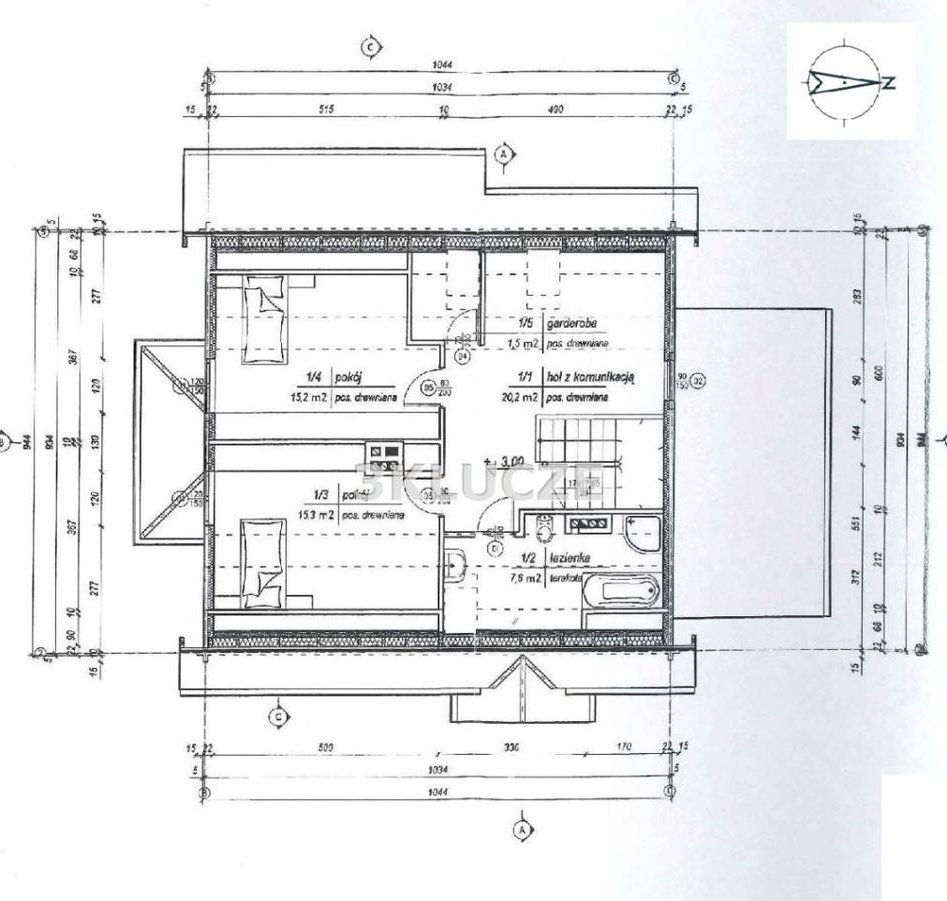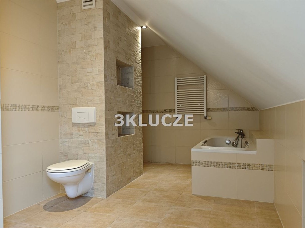 Na poddaszu użytkowym garderoba, łazienka, dwie przestronne sypialnie (ok. 20 m2 netto po podłogach) oraz możliwość zrobienia trzeciej (w tej chwili jest to otwarta przestrzeń, a la antresola).