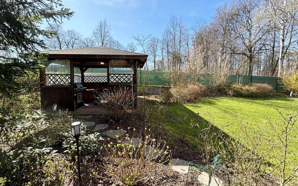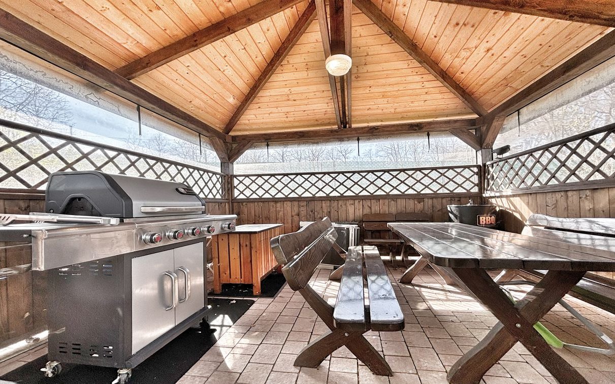 w ogrodzie zbudowana drewniana wiata na grilla - idealna na rodzinne spotkania