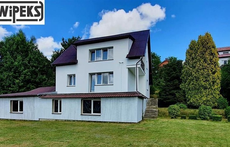 Nieruchomość usytuowana w bardzo ładnej, cichej i zielonej okolicy, z dala od miejskiego zgiełku – idealna dla osób ceniących spokój i prywatność. Dom jest 2- piętrowy i w całości podpiwniczony. Parter składa się z dużego i przestronnego salonu z wyjściem na taras, pokoju, kuchni, łazienki, przedpokoju, wiatrołapu, komórki i spiżarni. Na piętrze znajdują się 4 pokoje ( z jednego wyjście na balkon), łazienka i przedpokój. W części piwnicznej znajdują się pomieszczenie gospodarcze, kotłownia i garaż. Przy budynku dobudowany jest warsztat o pow. 45m2. Dom jest przestronny i funkcjonalny, z tarasu piękny widok na okolicę. Budynek usytuowany jest na działce o pow. 2050m2. Duża działka daje wiele możliwości aranżacyjnych – ogród, rekreacja lub prowadzenie działalności.