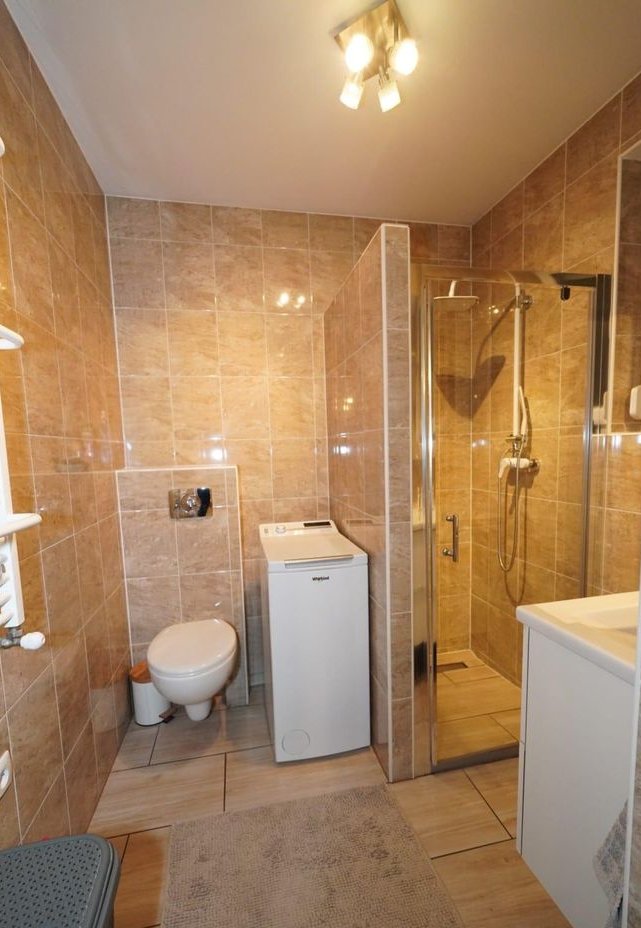 W łazience glazura i terakota.