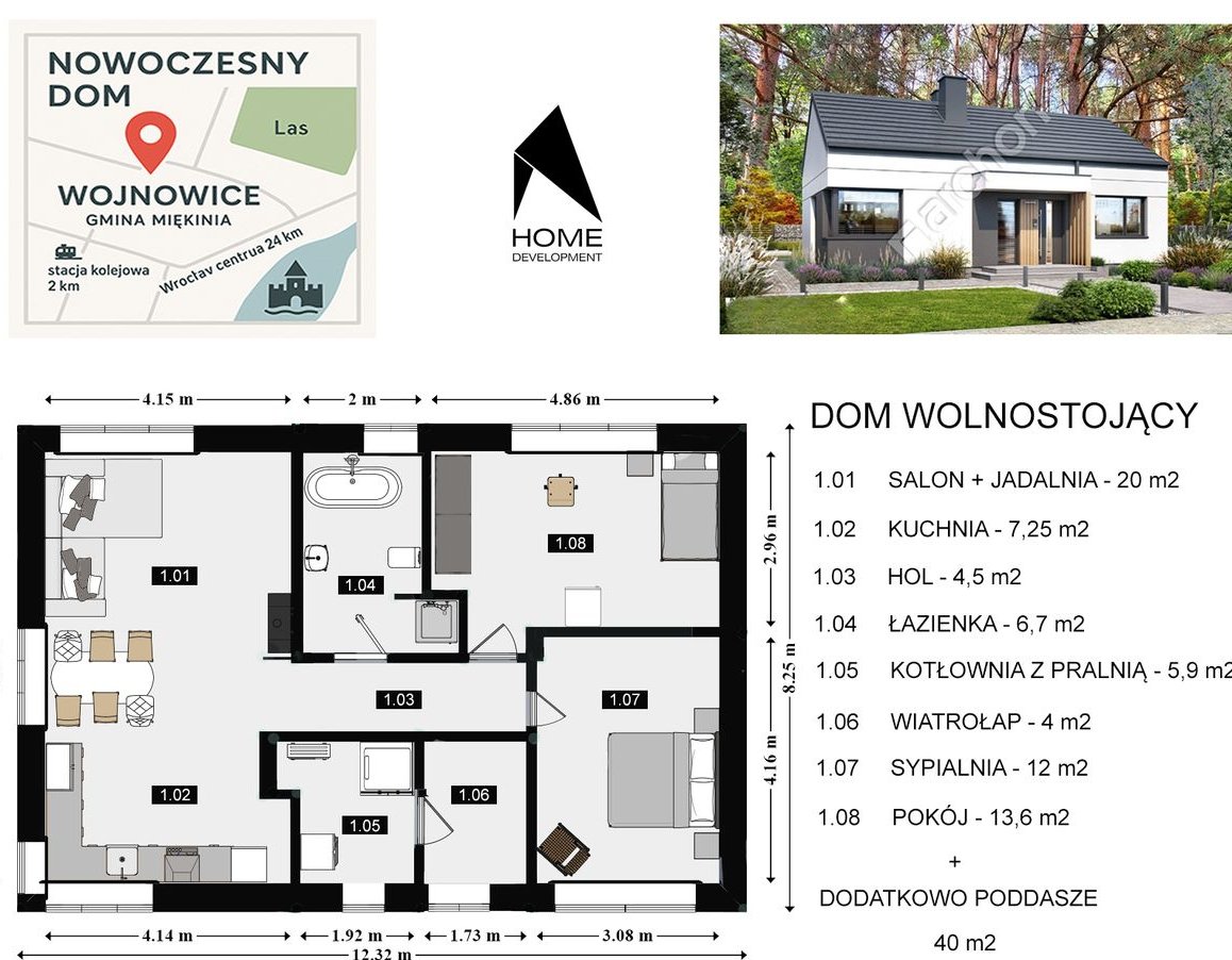 Dom wolnostojący w otoczeniu lasu – Wojnowice, gm. Miękinia