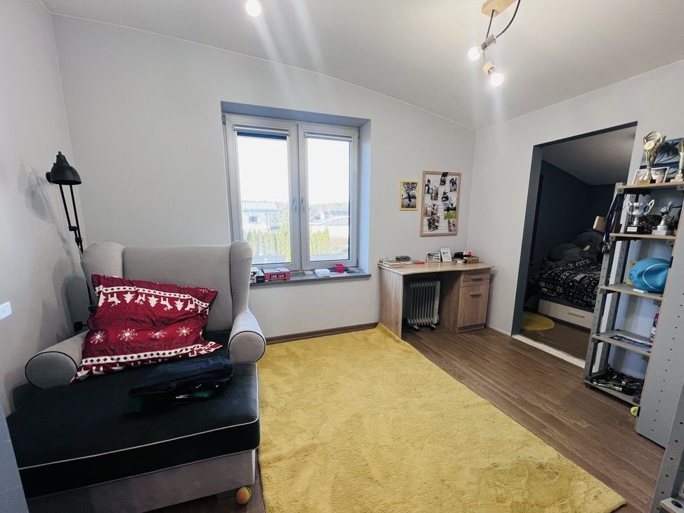 dwa pokoje dziecięce (jeden z dodatkowym pomieszczeniem, które może pełnić funkcję garderoby lub miejsca do nauki)