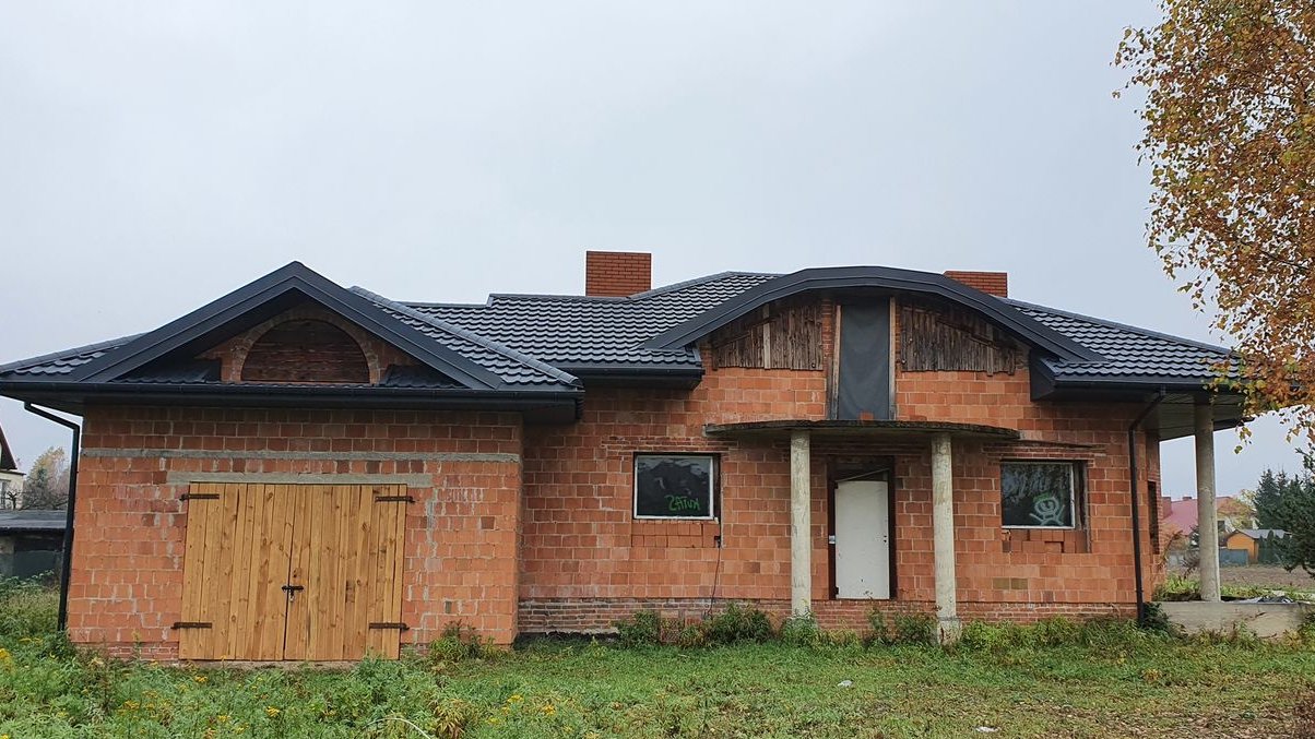 Budynek wolnostojący, podpiwniczony, z poddaszem użytkowym oraz dwustanowiskowym garażem w bryle budynku. Wybudowany w technologii tradycyjnej. Ściany dwuwarstwowe z pustaków ceramicznych z ociepleniem wewnętrznym. Konstrukcja dachu tradycyjna, drewniana. Dach pokryty blachodachówką na odeskowanej więźbie. Do domu doprowadzona jest woda oraz energia elektryczna.