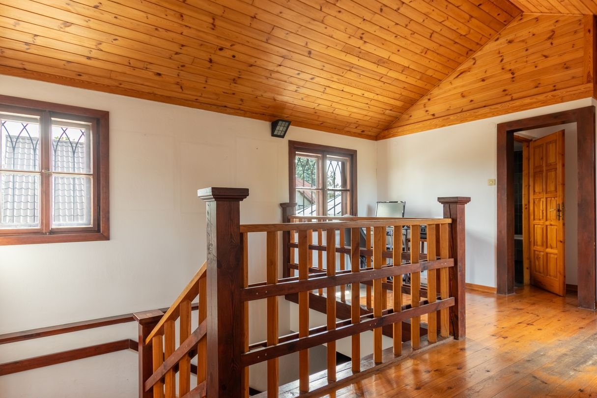 Dom o powierzchni użytkowej 220 mkw znajduje się na działce 835 mkw i został wybudowany w 1988 roku. Został zaprojektowany z myślą o komforcie życia codziennego, z podziałem na funkcjonalną strefę dzienną na parterze i prywatną strefę nocną na poddaszu.
