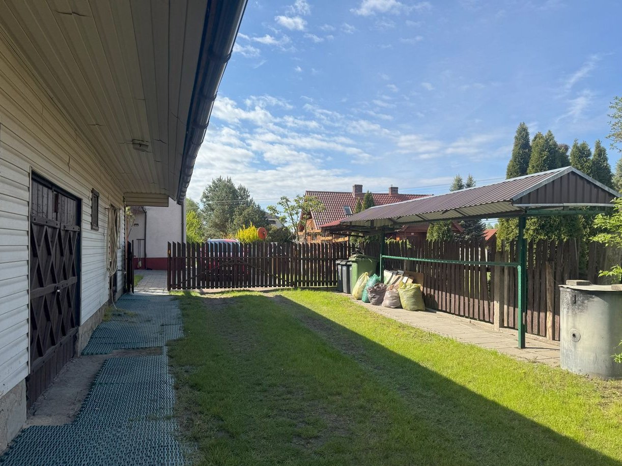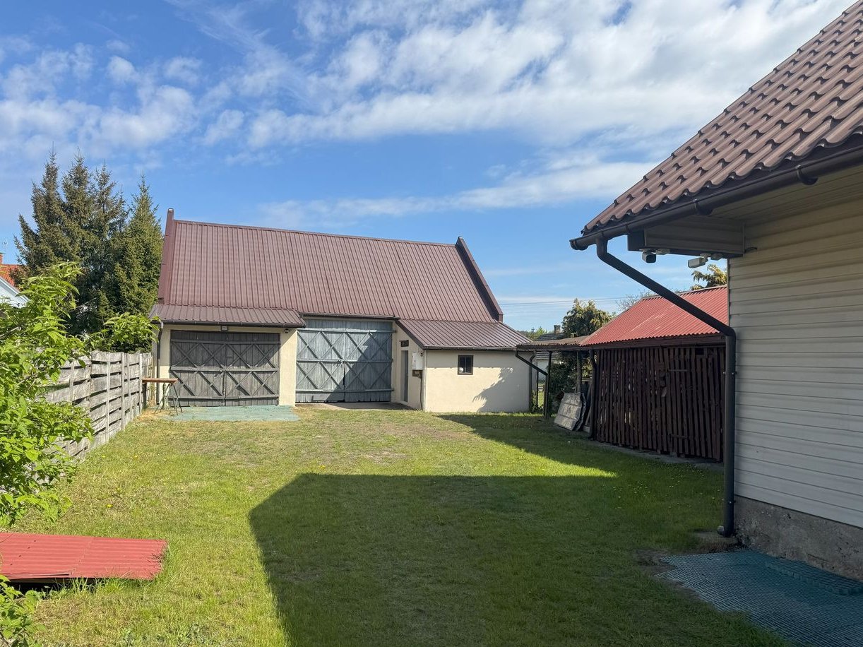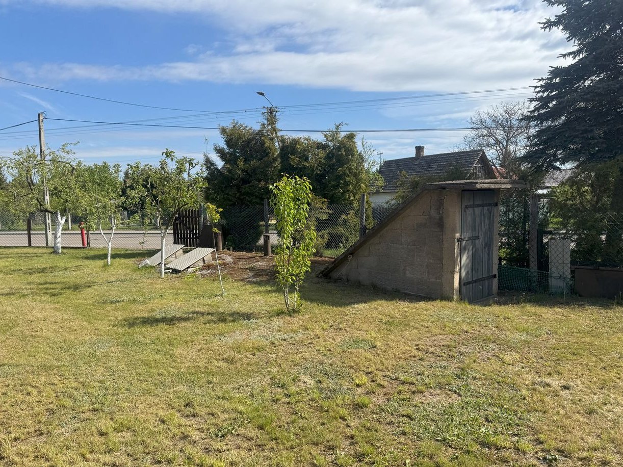 Działka o powierzchni 1277 m2 zabudowana budynkiem mieszkalnym wolnostojącym oraz dwoma murowanymi budynkami gospodarczymi.