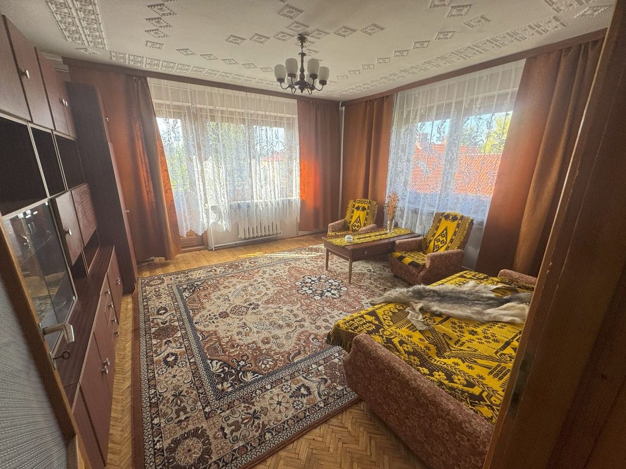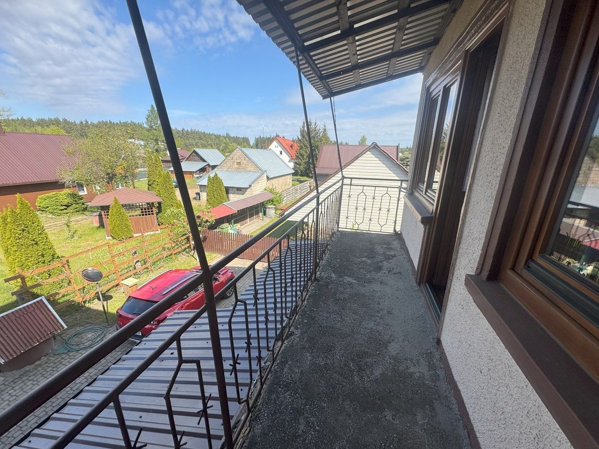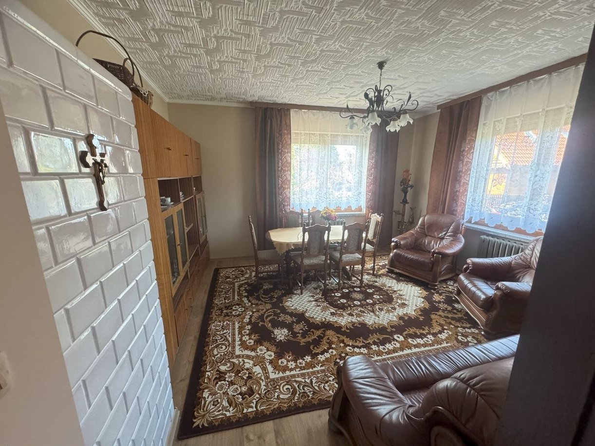 Budynek mieszkalny piętrowy z podpiwniczeniem i poddaszem nieużytkowym o powierzchni użytkowej 144 m2 . Osiem pokoi na dwóch kondygnacjach, łazienka na każdym piętrze.