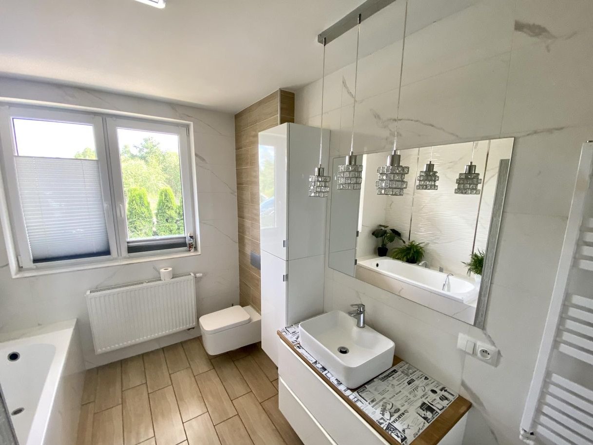 - łazienka z wanną i prysznicem o pow. 10,80 m2